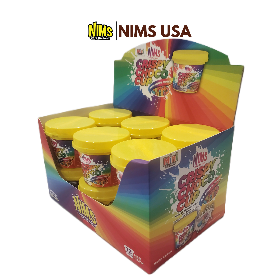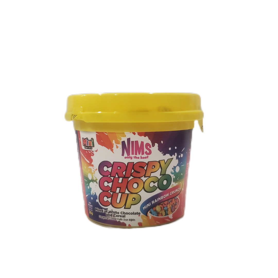 Colorful fun cereal in mini rainbow crunch generously bathed in silky white chocolate